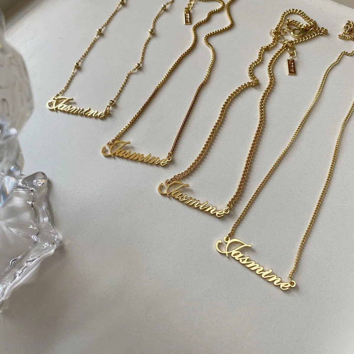 Choose from a variety of lettering styles for your personalized necklace: cursive, classic, modern, or handwritten. Each font adds a unique touch to your jewelry, reflecting your taste and personality.